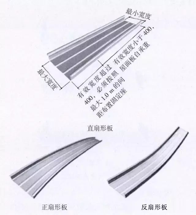 2)正、反弧板:适用于半径小于自然成弧半径的单曲屋面;
