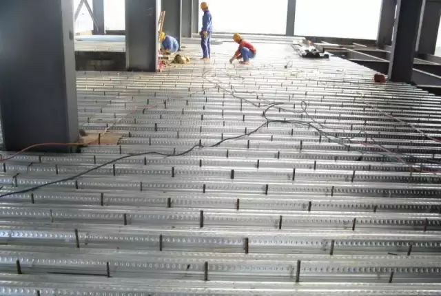 楼承板的工艺流程大体是这样的:弹线→排版下料→吊运→压型钢板安装→堵头板和封边板安装→焊接固定→验收→布筋→埋件→浇筑→养护。